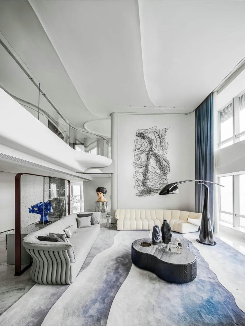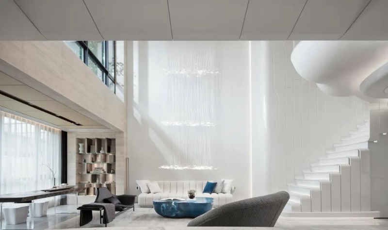 在一些别墅或者复式的空间,将客厅区域做挑空的方式似乎已经成为别墅或者复式这些大宅豪宅的标准配置,既有很高的颜值,又有极为开阔的视野,不乏高端大气档次感的空间气质,那么对于豪宅别墅中挑空的客厅究竟该如何设计呢?